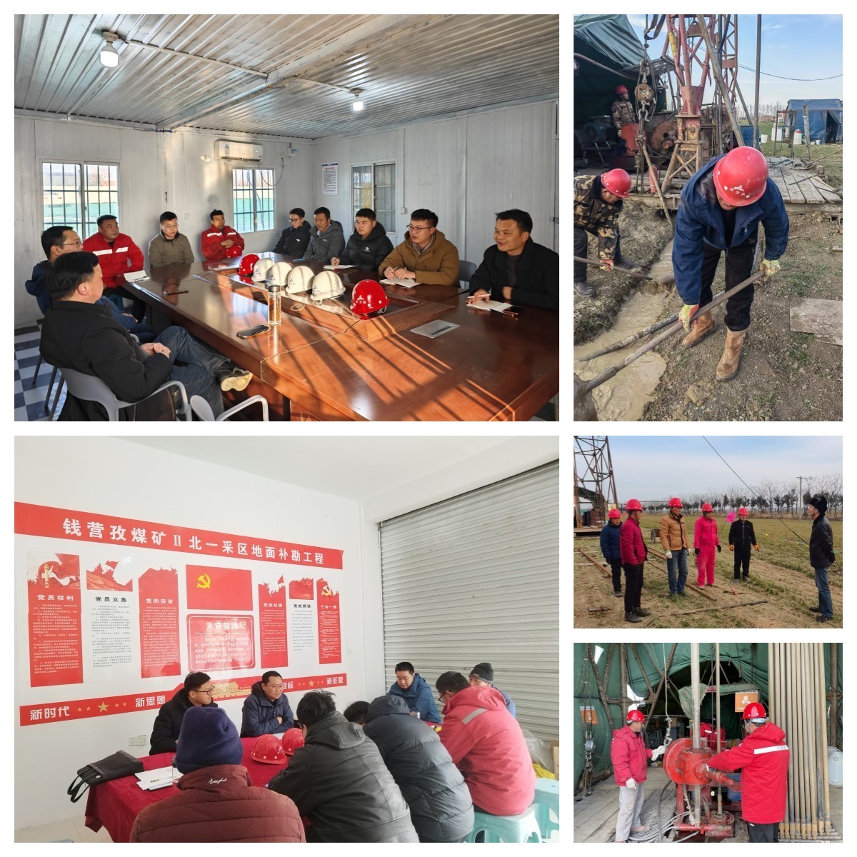 地勘公司、特钻公司等实体公司均在有序开展复工复产工作,祁南煤矿31采区“四含”治理工程项目D1孔组正在整理钻机平台,安装注浆设备,D2孔组开始扫孔,做耐压实验;钱营孜煤矿Ⅱ北一采区地面补勘工程项目已经开始下钻;许疃煤矿D5疑似陷落柱治理工程项目在整理现场,组装钻塔;朱仙庄煤矿2025年第一批次地面水文地质补勘工程项目正在重新调配泥浆,充分循环钻孔,为钻进施工做准备。目前全队已有21台钻机复工。
