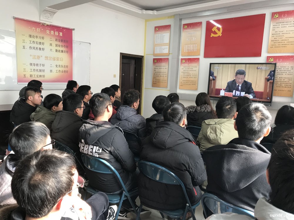 队第五团支部组织在埇桥区农饮水安全巩固提升工程项目部的青年团员集中收看庆祝改革开放40周年大会实况