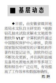 安徽局sgndf一计算机软件著作权获国家版权局登记证书——见2020年11月2日中煤地质报第二版